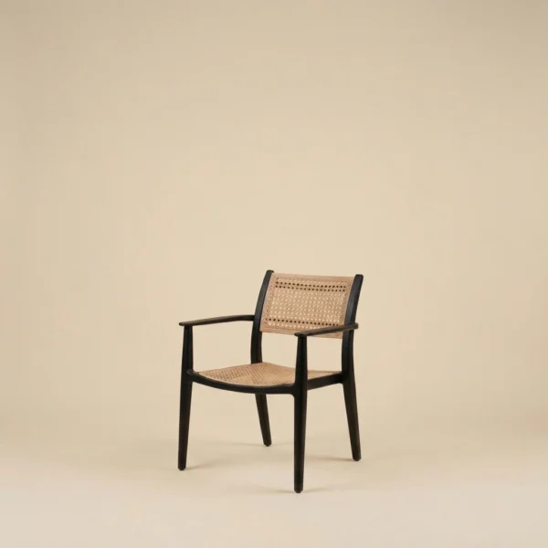 - Versatile Aesthetic: The juxtaposition of natural earth tones and a deep black finish allows this chair to anchor Bohemian, Scandinavian, or Mid-Century interiors with ease.